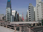 やがて左手に見えてくる大きなビルは“三田国際ビル”。パプアニューギニアの大使館が入っている。この辺りからは周囲が開けてくる。歩道も広々としている。目の前には首都高速環状線が見えていて、その下をくぐり、古川を渡ると大きな交差点。赤羽橋だ。交差点も憶えておいたほうがいい。