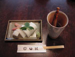 蕎麦屋で一杯といえばやはり日本酒なのだが、ご主人お勧めなのは“焼酎そば湯割り〜400円”だ。蕎麦の甘み旨みが溶け込み、実にまろやか。香りもいい。焼酎は麦、芋、蕎麦の三種類があるが、いずれも“そば湯割り”が合うとのこと。