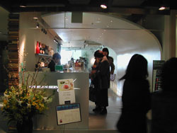 インターナショナル・キュイジーヌを売り物にするエール・ブラン・サービスは、2001年11月にオープン。白をメインとした設計は水谷壮市氏の手によるもの。コンコースのような入り口を抜けると、駅ビルの中とは思えない異空間が広がる。全体に低くアレンジされた家具、高い天井、ALTA方面を一望出来る大きな窓ガラスとの組み合わせは、独特の開放感と寛ぎを生み出している。